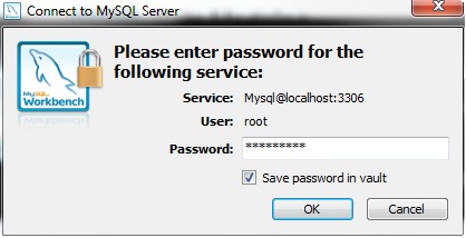 | จะมี Popup Dialog ถามรหัสผ่านของ root ให้ใส่รหัสผ่านของ root ที่ได้ตั้งไว้ในตอนติดตั้ง MySQL |